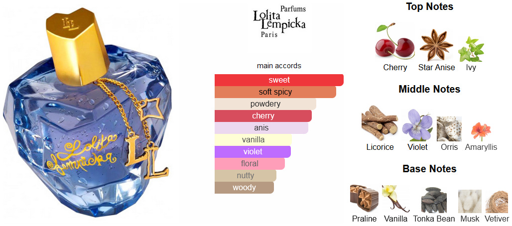 Descobri este perfume recentemente, num passeio pelo catálogo da Primor, quando andava à caça de algo para oferecer à minha mãe. Vi o preço, vi as reviews no Fragrantica e pensei, que se lixe… O Verão está a acabar, é altura de construir a colecção de aromas Outono/Inverno. Comprar este Lolita Lempicka às cegas foi arriscado, porém, a sorte protege os audazes, e posso dizer que o adorei! É uma compra cega arriscada porque este perfume é muito peculiar e pode não ser ao gosto de toda a gente. É doce mas não demasiado, a mim vai-me buscar aromas mais térreos. Não sei bem distinguir as notas, mas noto que poderá ser, de facto, musky, e também liquorish - espero eu, já que não tenho referência do que são, em teoria, estes cheiros.