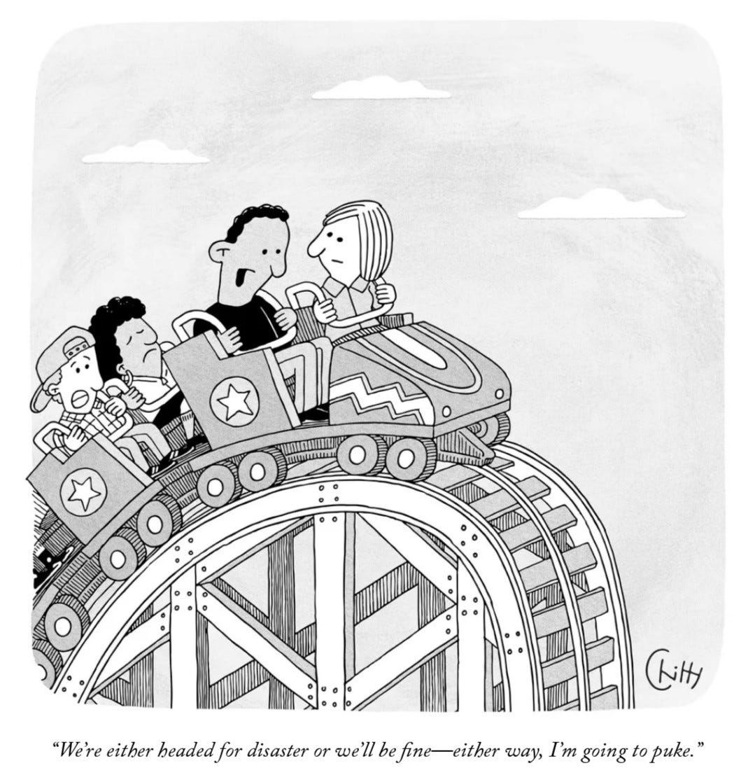 Então, estou dividida. Valerá a pena estar em pânico com a vitória de Trump? Não vai tudo ficar mais ou menos na mesma? E ontem bateu-me… espera, agora vamos aturar QUATRO anos de Administração Trump OUTRA VEZ! Mais quatro anos de coração nas mãos porque o destino do mundo está ao comando de um autêntico boneco, um escroque sem qualquer sentido de Estado, de respeito institucional pelo cargo que ocupa, nada, sendo que agora tem uma máquina política forte por detrás dele, desde logo pelo seu Vice, o JD Vance.