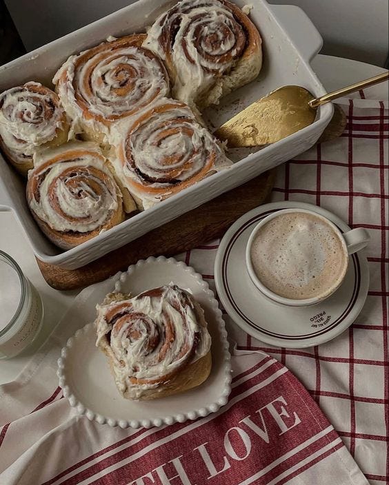 Cinnamon rolls: deparei-me com um tiktok de uma rapariga a fazer uns cinnamon rolls e ela estava tão contente e entusiasmada que fiquei com vontade de experimentar. Gosto muito de fazer coisas na cozinha e de raiz, pelo que estou em pulgas para fazer estes famosos rolinhos de canela do zero, fazendo também a massa à mão.